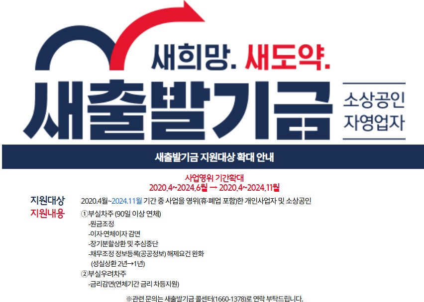 새출발기금은 코로나19로 어려움을 겪는 소상공인과 자영업자를 위한 정부의 특별한 채무조정 프로그램이에요. 2020년 4월부터 2024년 11월까지 사업을 영위한 분들의 금융권 대출에 대해 상환기간 연장, 금리 인하, 원금 감면 등의 혜택을 제공하고 있어요. 이 제도를 통해 경제적 어려움에서 벗어나 새로운 출발을 할 수 있는 기회를 만들어보세요! 🌟