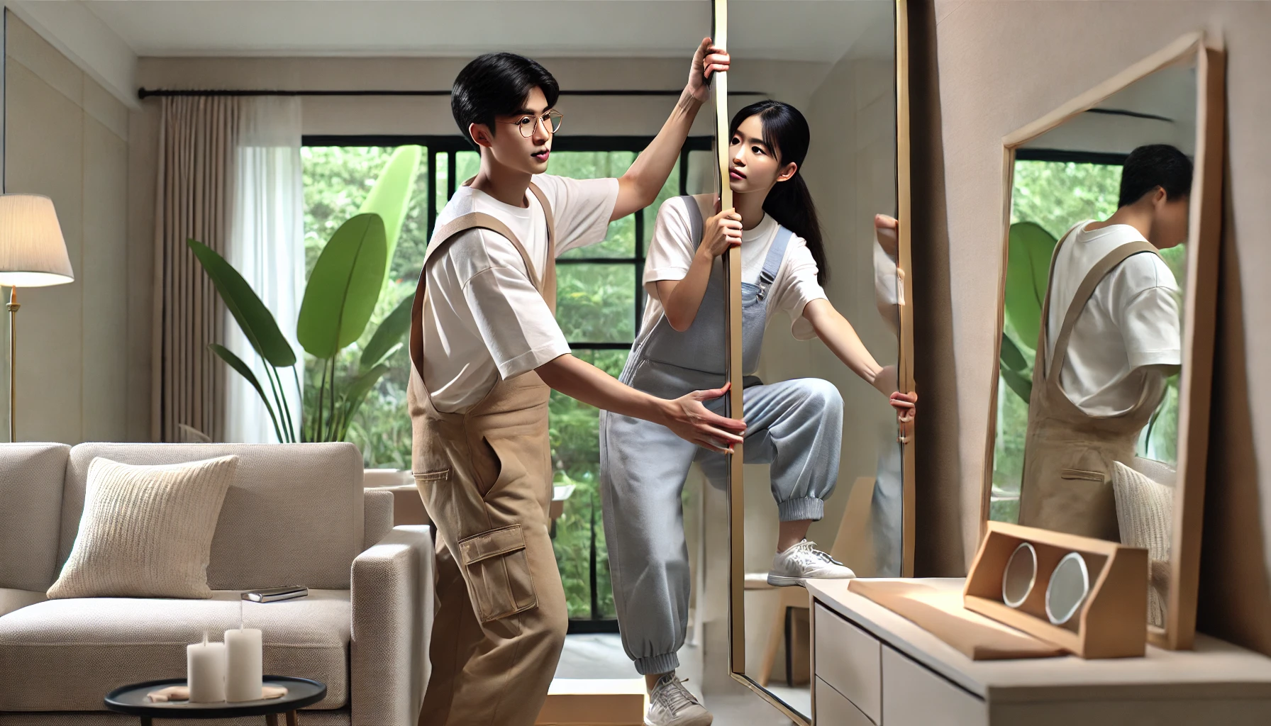 거울이 햇빛을 반사해 실내로 빛을 끌어들이는 역할을 하게 하려면, 창문 맞은편 혹은 사선 방향이 좋아요. 단, 빛이 너무 강하게 반사되어 눈부시면 위치를 조정해줘야 해요. 적당한 각도 조절이 중요해요.