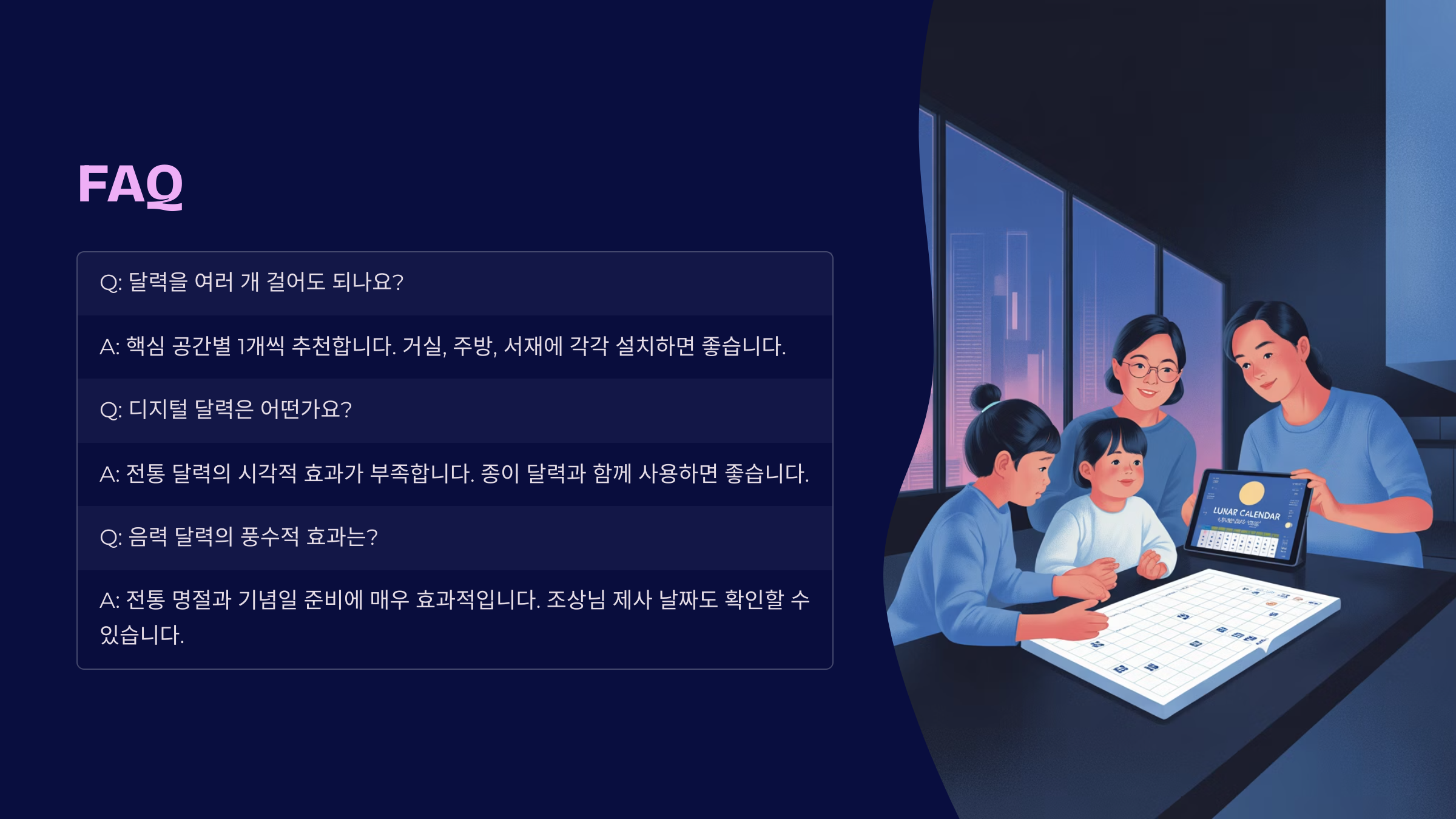 이제 달력을 단순한 날짜표가 아닌, 공간을 살리고 일상을 정리하는 스마트한 소품으로 활용해보세요. 다음은 지금까지 많이 궁금해하셨던 달력 위치 관련 질문들을 모은 FAQ입니다 🙋♀️