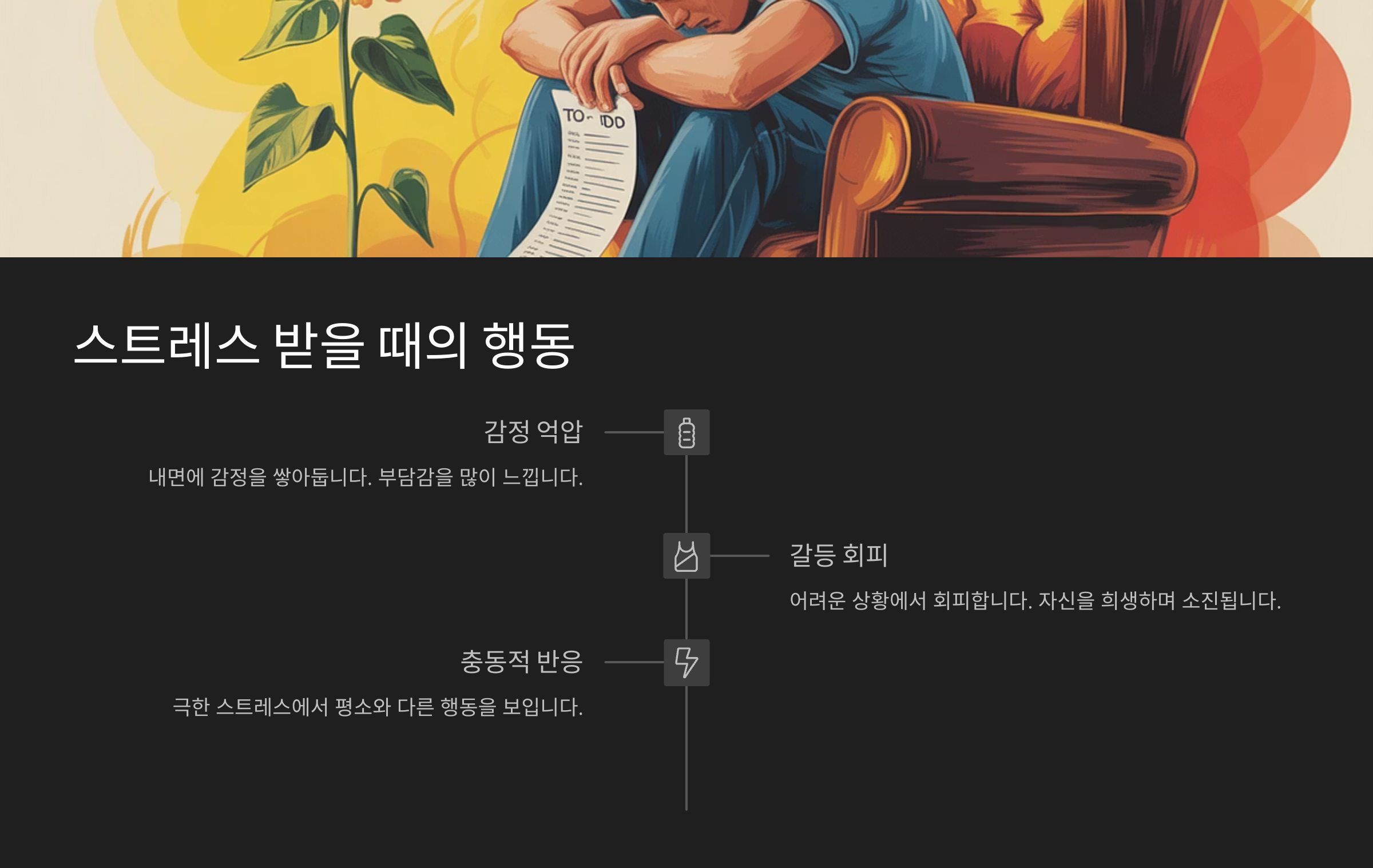 | 예상치 못한 변화 | 불안, 소극적 회피 | 루틴 정리, 계획 다시 세우기 |